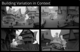 Другие изображения в оттенках серого раскрывают больше деталей о рыночном районе, включая некоторые магазины, такие как рыбный рынок и магазин под названием «The Phoenix Feather.»