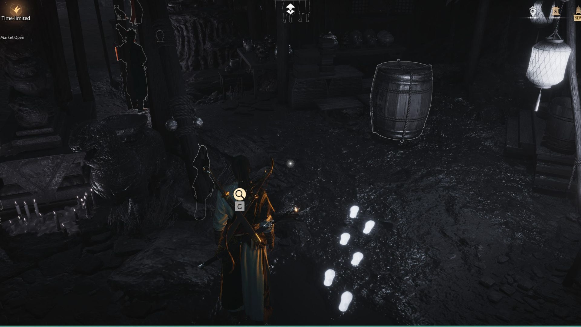 Как только вы найдёте Маленького Шоу и Маленького Фу, вы можете притвориться, что ранили их, чтобы обмануть Маленькую Лу и заставить её показаться. Это сработает, но она появится только на мгновение. Вы можете увидеть её на крыше неподалёку. Покиньте магазин и заберитесь туда, затем снова используйте Ощущение ветра. Вы заметите светящиеся следы, ведущие по крыше, но они внезапно исчезнут за краем, направляя вас в более тёмную часть Рынка Призрачного Света.