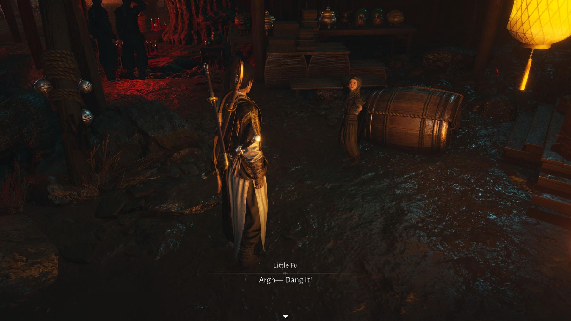 Как только вы победите Dao Lord, направляйтесь к Рынку Призрачного Света. Войдя, идите к передней части и поищите Horse-Face, который опирается на каменный столб. Рядом вы найдете часть одежды Little Fu. Используйте свой Wind Sense, чтобы отследить её следы.