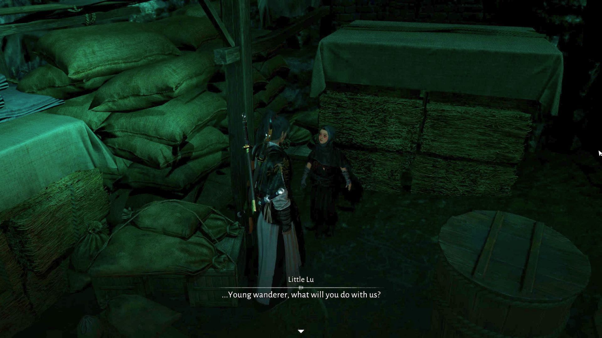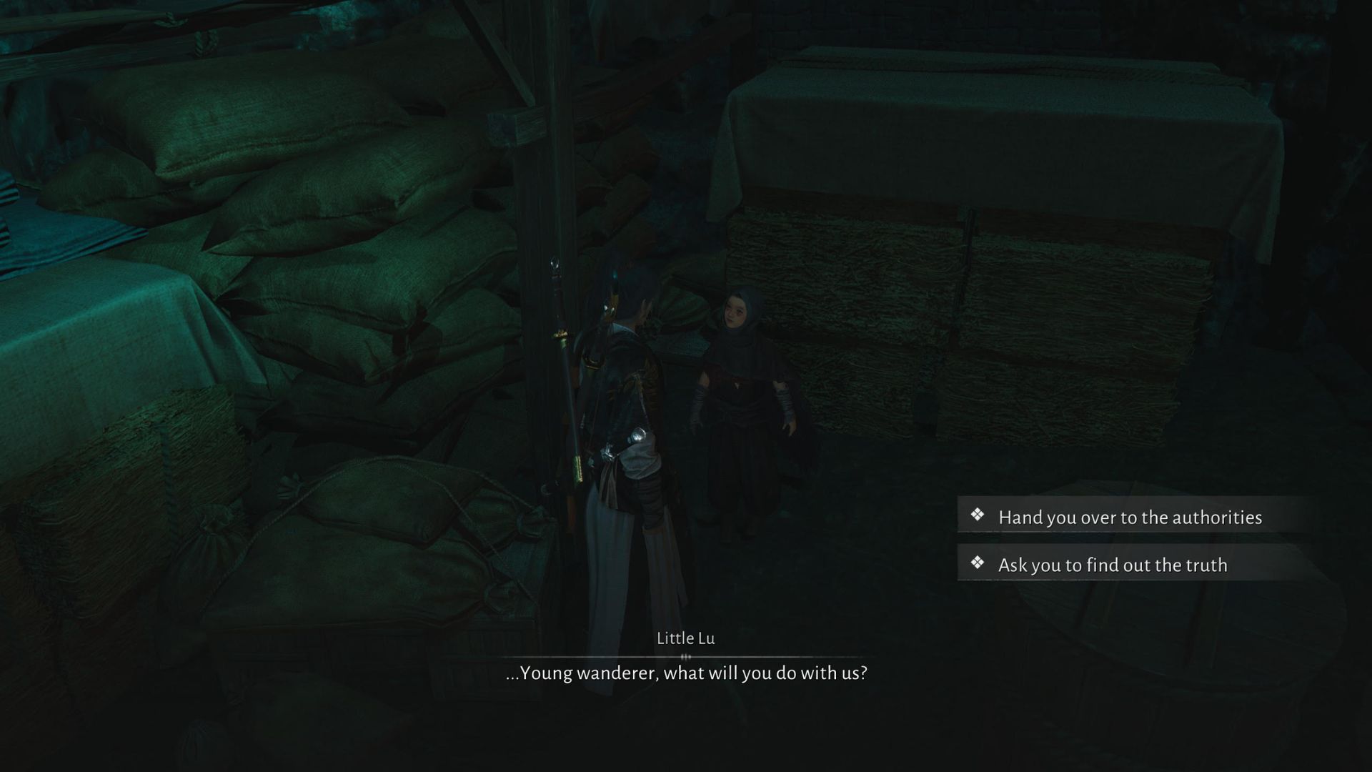 После того, как вы обнаружите девушек, прячущихся под брезентом, вам предстоит решить, что с ними делать: сдать их властям или выслушать их историю. Если вы решите выслушать их, маленькая Лу признается, что золотой таз был уловкой – они использовали его, чтобы выдавать фальшивые монеты за настоящие. Они сделали это, потому что в Кайфэне наблюдался острый дефицит монет, и это был способ, которым они пытались выжить.